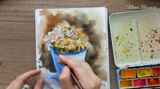 Бесплатный мастер-класс по акварельной живописи_ ромашки. Рисование акварелью для начинающих.
