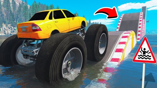 СМОЖЕТ ЛИ ГИГАНТСКИЙ ПРИОРА ПРОЕХАТЬ ВОДНЫЕ КОЧКИ В ГТА 5 МОДЫ! ЭКСПЕРИМЕНТЫ В GTA 5 MODS