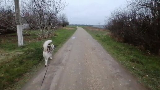 Прогулка с собакой по полям. Сильный ветер.