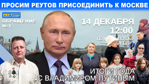 Обращение 1. Итоги года с Владимиром Путиным. Прямая линия 2023. Просим Реутов присоединить к Москве.