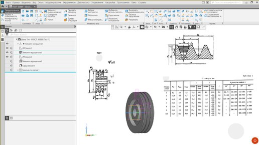 Построение параметрической модели шкива ГОСТ 20889 тип 4
