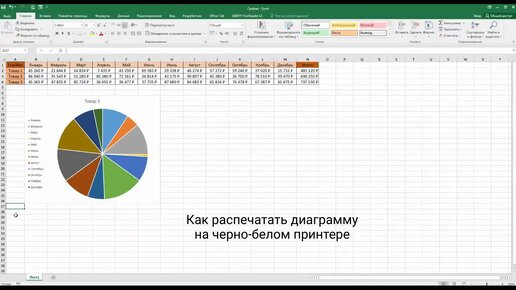 Как в Excel распечатать диаграмму на черно-белом принтере?