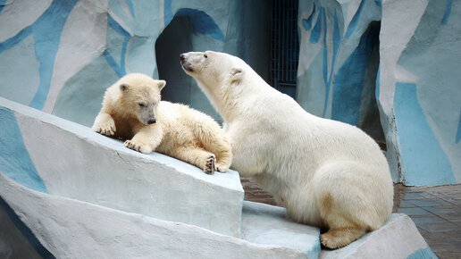 Медвежата Белка и Стрелка вместе прыгают, плавают между льдинами и играют сразу тремя канистрами.
