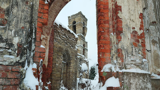 Кладбище, утонувшее в сугробах. Живописные руины Никольского храма. (с. Русско-Высоцкое, Лен.обл).