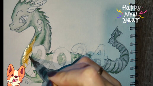 Как нарисовать дракона карандашом и раскрасить акварелью. Рисунок дракона с цифрами 2024