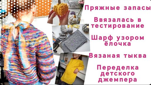 ВЛОГ Пряжные запасы Ввязалась в тест Шарф узором ёлочка Вязаная тыква Переделка детского джемпера