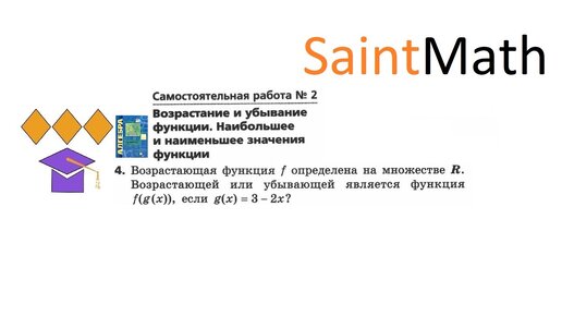 *Возрастающая функция f определена на множестве R. Возрастающей или убывающей является функция f(g(x)), если g(x)=3-2x