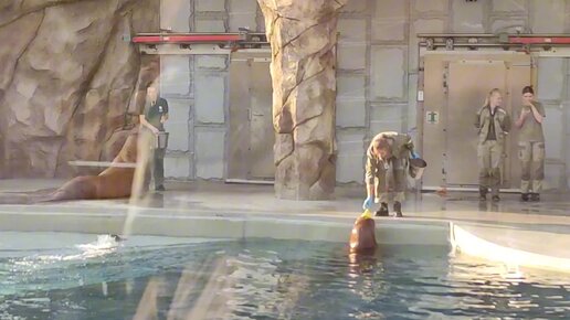 У морских котиков обед. Чтобы получить корм, они готовы выполнятьлюбые команды!
