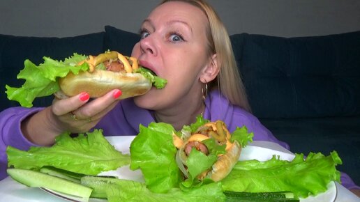 Мукбанг ХОТ- ДОГ домашний с лапшой доширак от королевы сосисок. Еда.