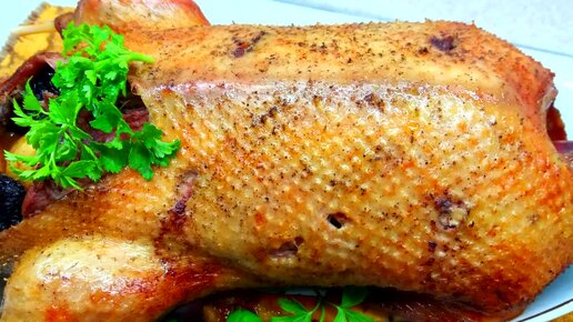 Утка в духовке с яблоками и черносливом.Новогодний стол.