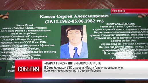 ТК "Родной". В Семейкинском УВК открыли «Парту Героя» посвященную воину-интернационалисту Сергею Касееву