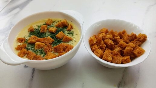 Суп с плавленными сырками и сухариками