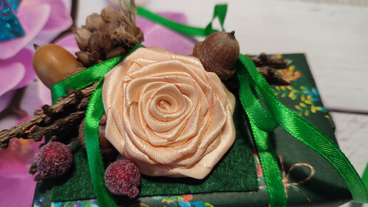 Украшение подарка с розой канзаши. Часть 2: сборка украшения. Мастер-класс.