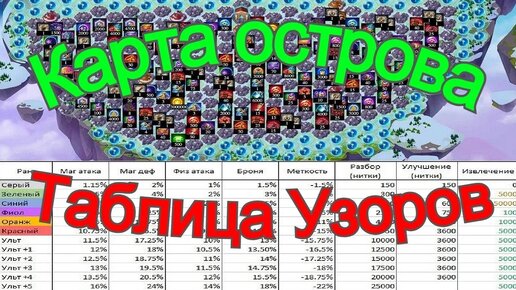 Хроники Хаоса Карта расположения всех ресурсов острова, таблица улучшения узоров Hero Wars