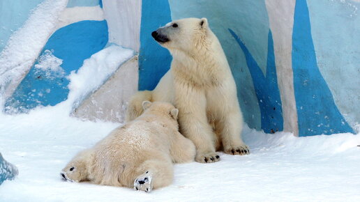 У белых медвежат кому-то важнее мамино молочко, а кому-то сладкая косточка.