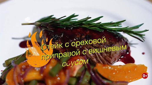 Стейк в ореховой приправе с вишневым соусом