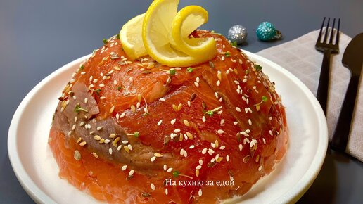 Торт-салат для новогоднего стола: креветки, авокадо, яйцо и творожный сыр под нежной сёмгой