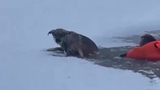 В Московской области спасатели достали провалившуюся под лед собаку