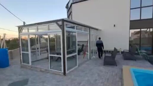 Раздвижные двери Slidors (5 конструкций!) в пристроенной беседке.