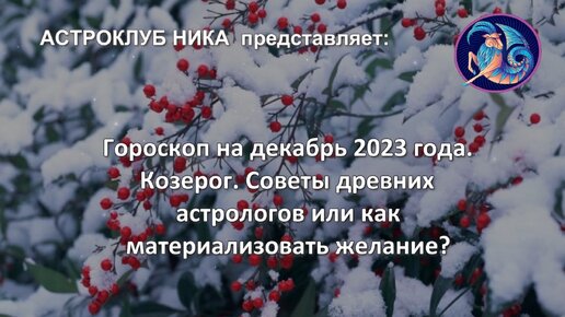Гороскоп на декабрь 2023 года. Козерог. Советы древних астрологов или как материализовать желание?
