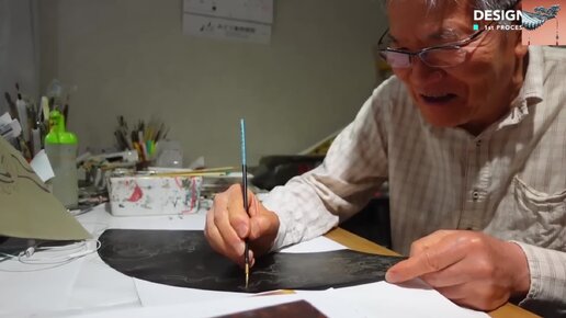 Процесс изготовления киотского складного веера. Веер с изображением богов ветра и грома.