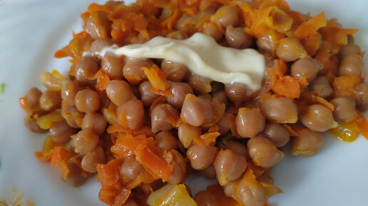 Необычный завтрак из нута с овощами, очень сытно.