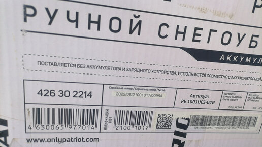 Обзор снегоуборочной ручной аккумуляторной машинки, PATRIOT 1001.
