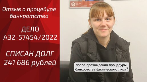 Отзыв клиента «Единого Центра Защиты» о банкротстве. Списали 241 868 рублей и сделали клиентку счастливой! Банкротство физических лиц!