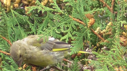Зеленушки кушают семена туи