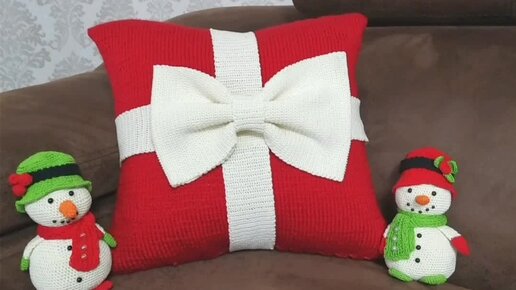 Декор к Новому году- диванная подушка с бантом. Моя новая работа крючком.