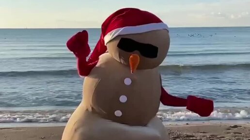 #Танцующий снеговик из песка на пляже❄️ #ёлки#пляж#анапа#снеговик#новыйгод