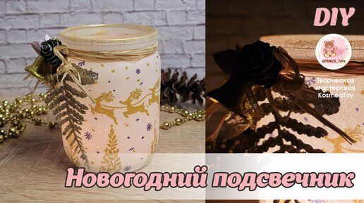 Новогодний подсвечник из поллитровой банки своими руками. Делаем волшебство на новогодний стол. Декупаж.