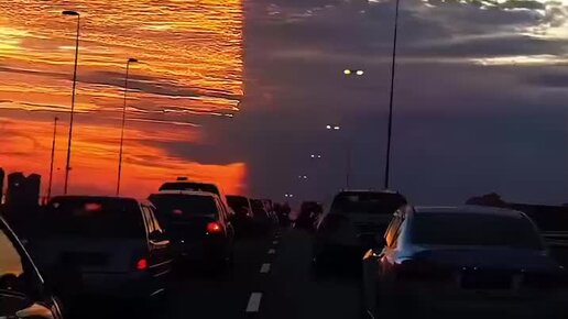 В американском штате Флорида наблюдали необычное явление: небо во время заката разделилось на две части.