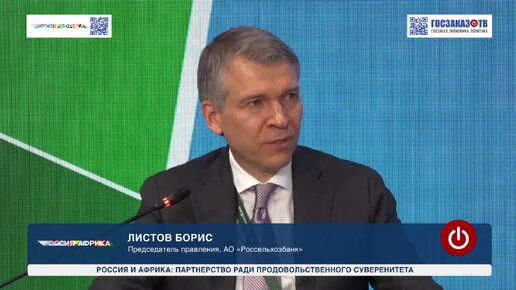 Россия и Африка: партнерство ради продовольственного суверенитета. Листов Борис, Председатель правления, АО «Россельхозбанк».