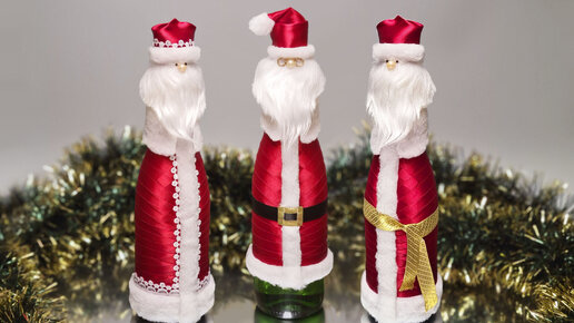 👍Три варианта декора бутылки вина Дед Мороз в подарок на🎄Новый год!