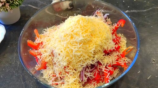 Шедевральный салат с крабовыми палочками "Коралл", ничего варить не нужно. Сочный, вкусный и новогодний!