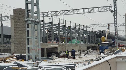 Строительство южного вестибюля городского вокзала "Лианозово" МЦД-1 (декабрь 2023)
