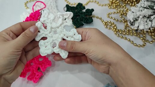 Снежинка крючком из хлопкового/полиэфирного шнура, отличный вариант использовать остатки пряжи.