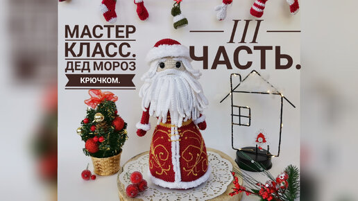III часть. Мастер класс по вязанию Деда Мороза крючком. Головной убор. Сборка и оформление.