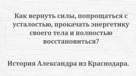 Как вернуть силы, попрощаться с усталостью, прокачать энергетику своего тела и полностью восстановиться? История Александра из Краснодара.
