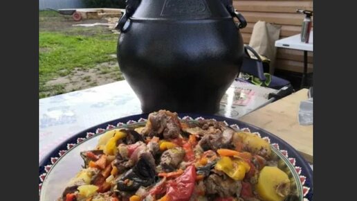 Готовим в афганском казане рагу из говяжьих ребер с овощами.