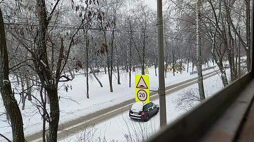 Заснеженный городской парк. Насладитесь парханием снега