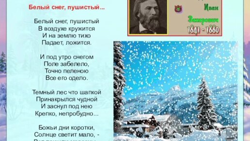 Стихи на зимнюю тему Есенина, Пушкина, Сурикова, Маршака.