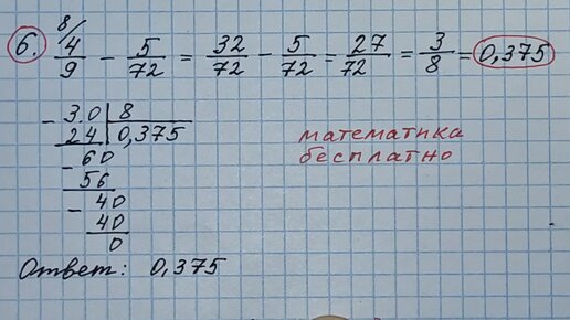 6) Найдите значение выражения 4/9-5/72. ОГЭ по математике 2024. Решу огэ. Математика бесплатно.