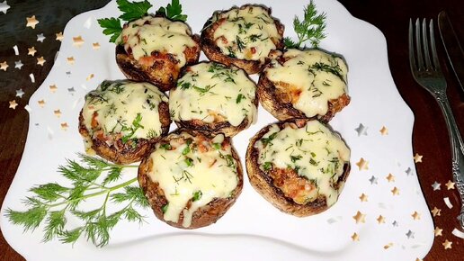 ФАРШИРОВАННЫЕ ШАМПИНЬОНЫ НА ПРАЗДНИЧНЫЙ СТОЛ.🧀🍄🍄
