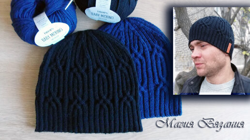 Мужская шапка с красивым узором и фабричным наборным краем.