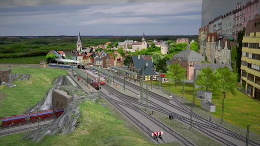Анимационная модель жд макета под любой масштаб. Движение поезда вид из кабины. 3D моделирование макета железной дороги. (ч.2) (Векторный)