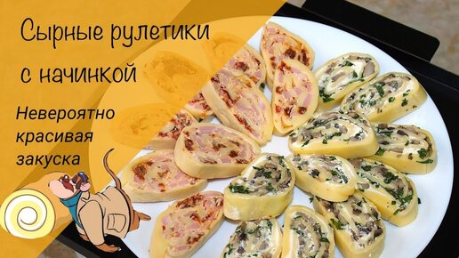 Очень красивая закуска на праздничный стол! Сырные рулеты с начинкой!