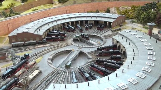 Выставочный ЖД макет с интенсивным движением Профессиональный жд макет. Отправление и движение составов по макету. (1:160)