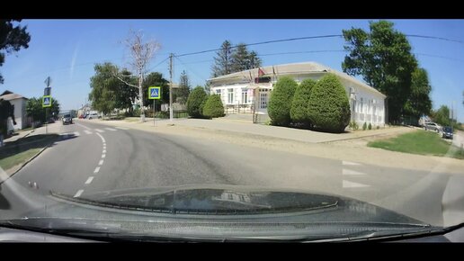 Станица у моря летом. Ахтанизовская Темрюкский район Краснодарский край. Едем по улицам станицы на машине.